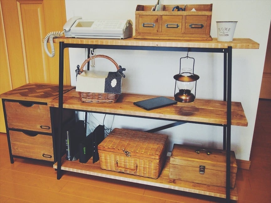 ※画像の棚板はホームセンターで売られている1X6材(1920X140X19mm)をWAX仕上げした板を使用しております。